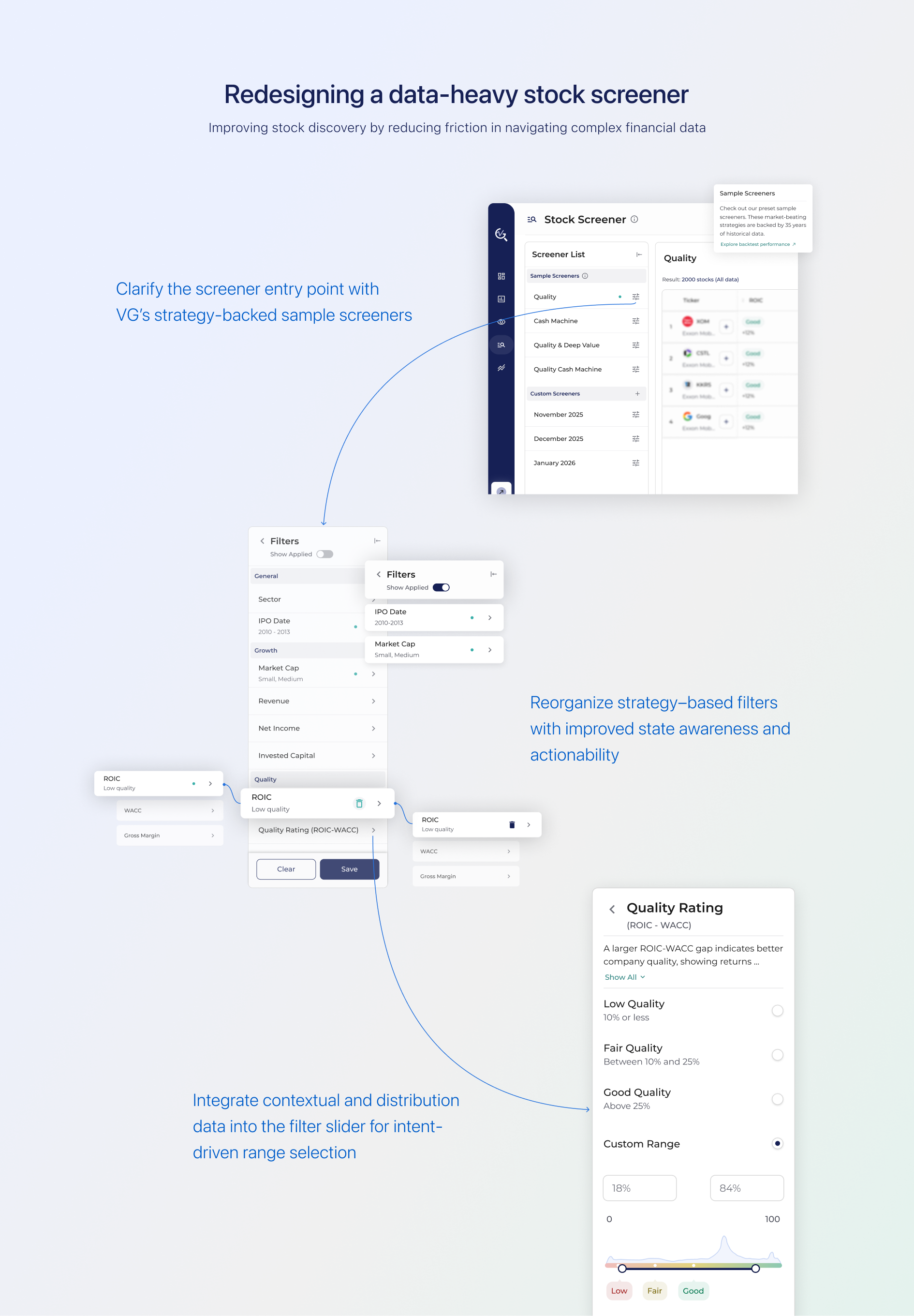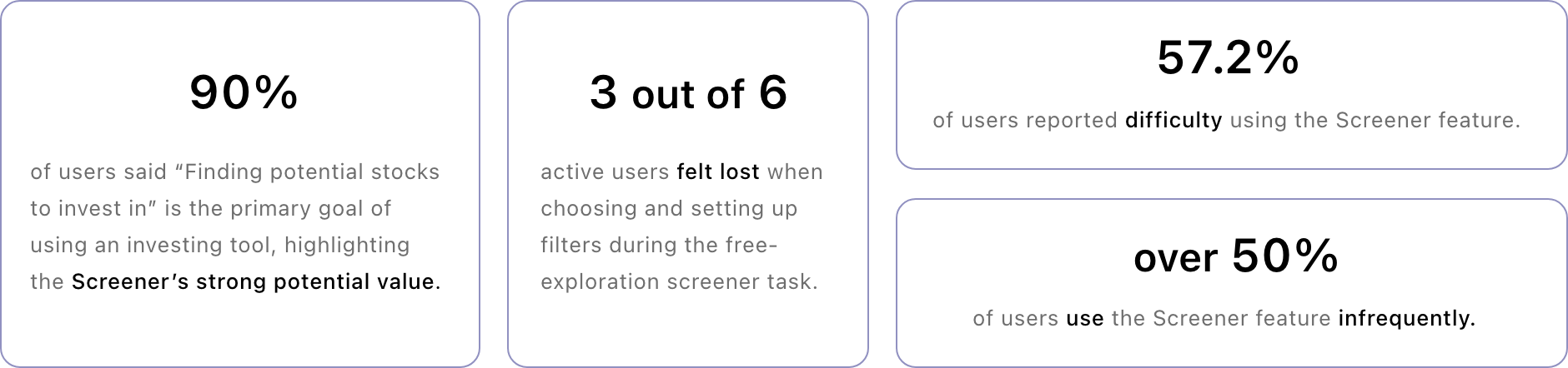 01. Users struggle to choose the right screeners and filters, and to connect VG’s guided
