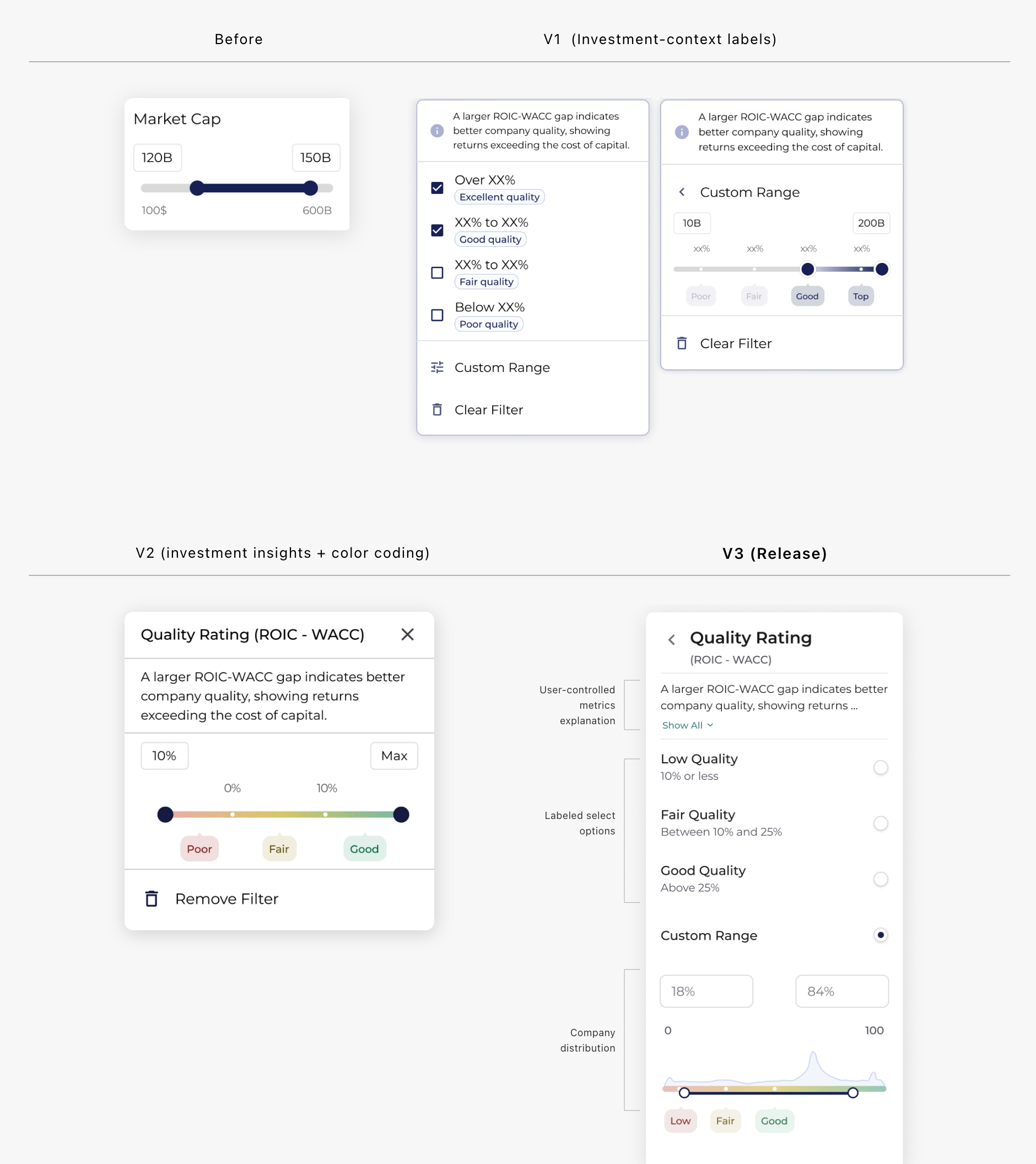 02. Reorganize filters around users’ investing goals and support filter adjustments quick